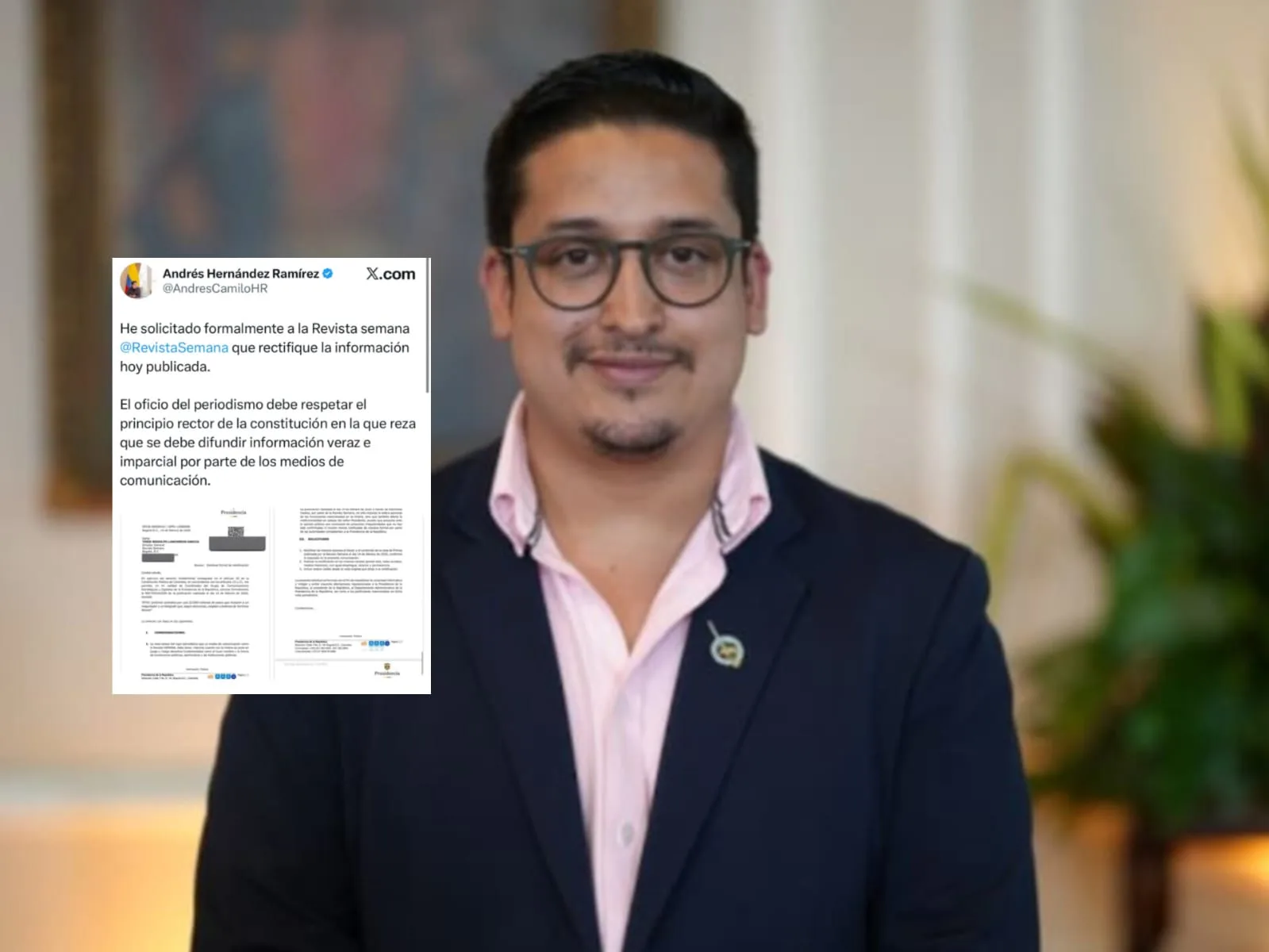 Tras la publicación, el coordinador del Grupo de Comunicaciones Estratégicas y Digitales de la Presidencia de la República, Andrés Camilo Hernández, salió al paso y aseguró que la información es falsa.